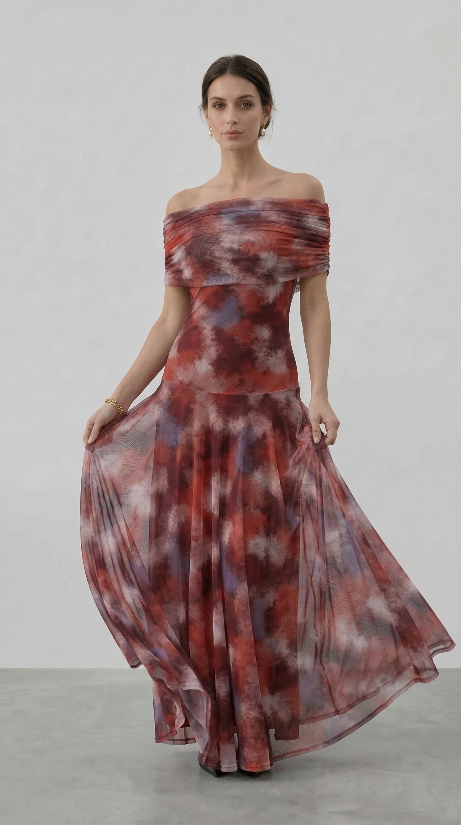 - Design elegante: scollo con spalle scoperte e taglio fluido che esalta la silhouette.