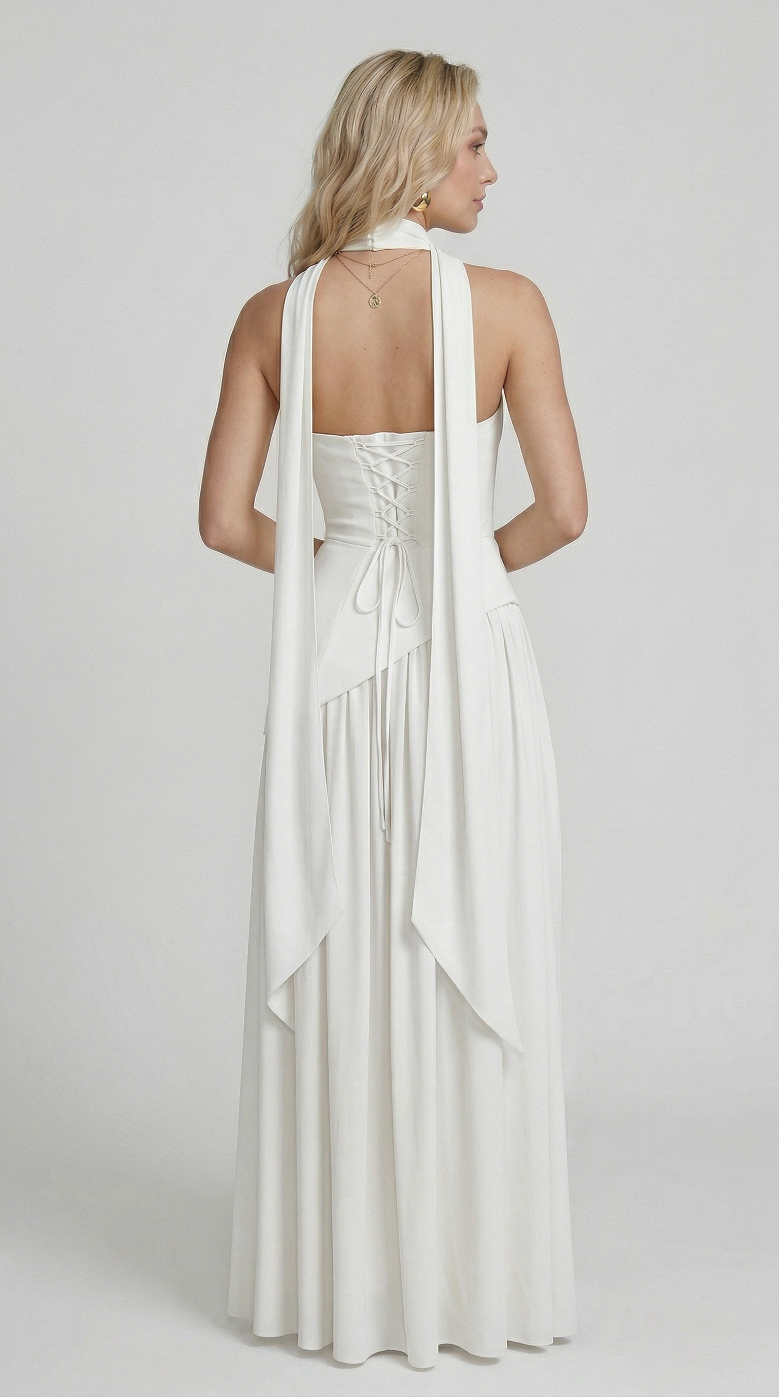 Sofie | Open Back Ivory Maxi Dress - Bianco