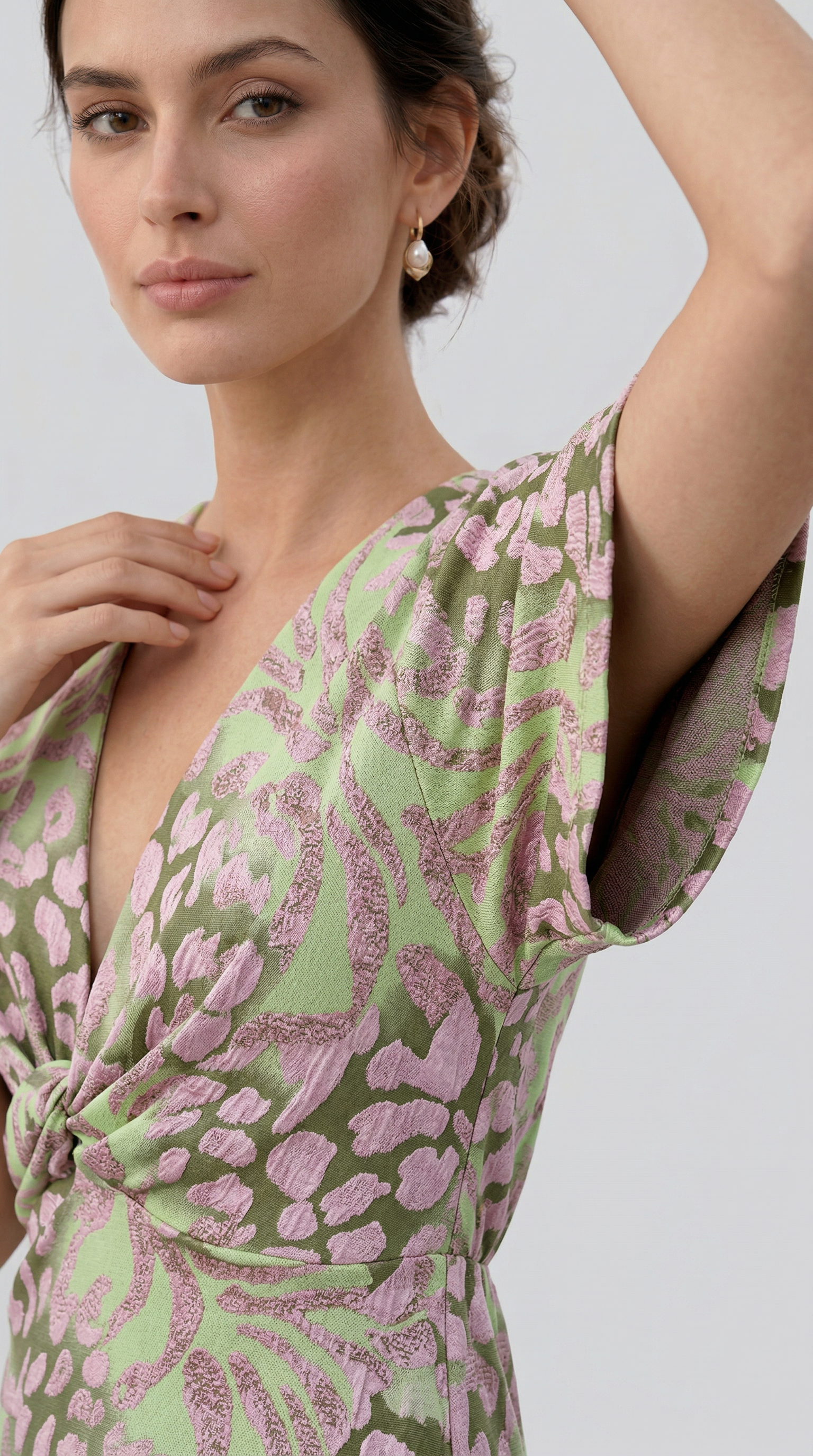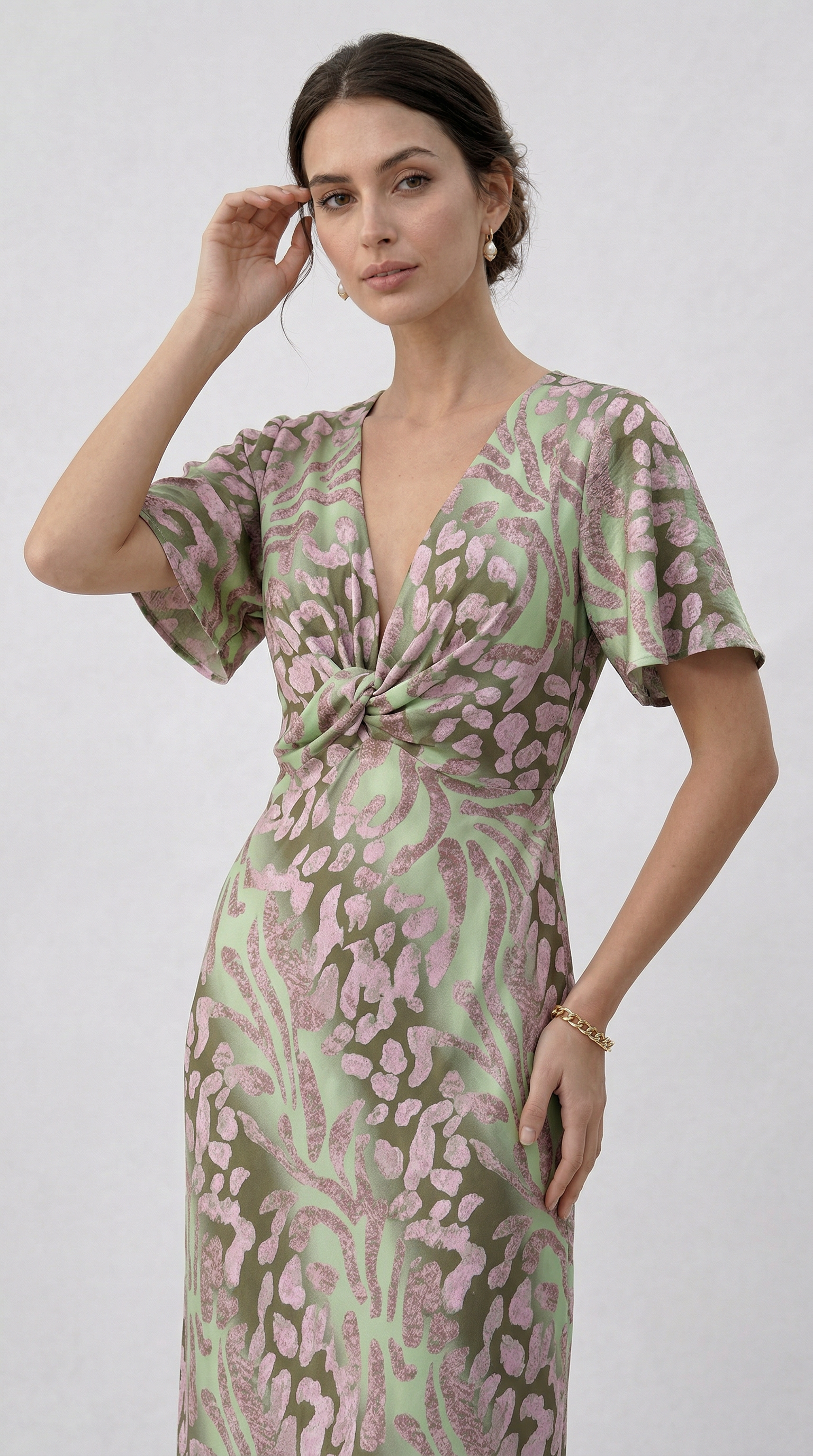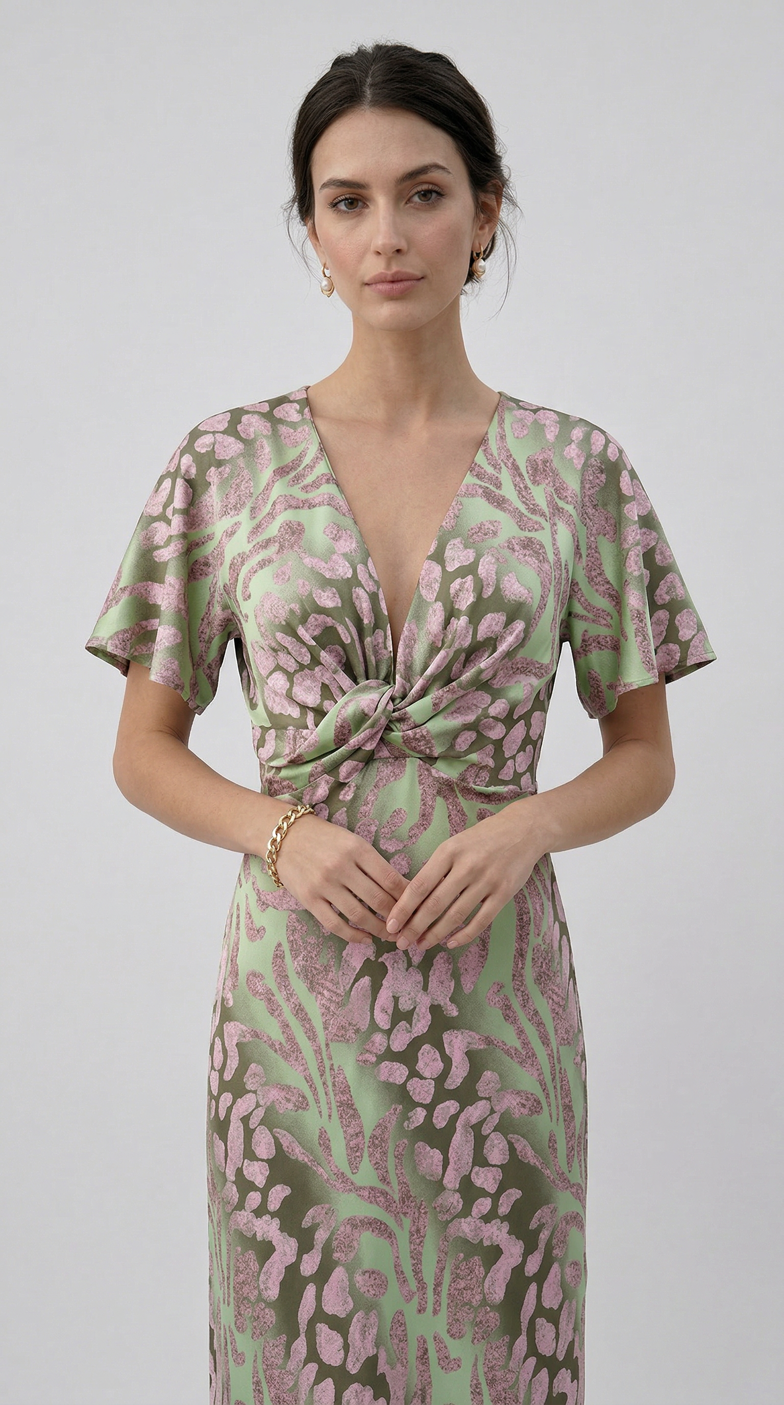 Scopri un abito lungo elegante e versatile, pensato per valorizzare la silhouette con naturalezza. Il design con scollo a V e dettaglio incrociato dona un tocco sofisticato e femminile, perfetto per ogni occasione.