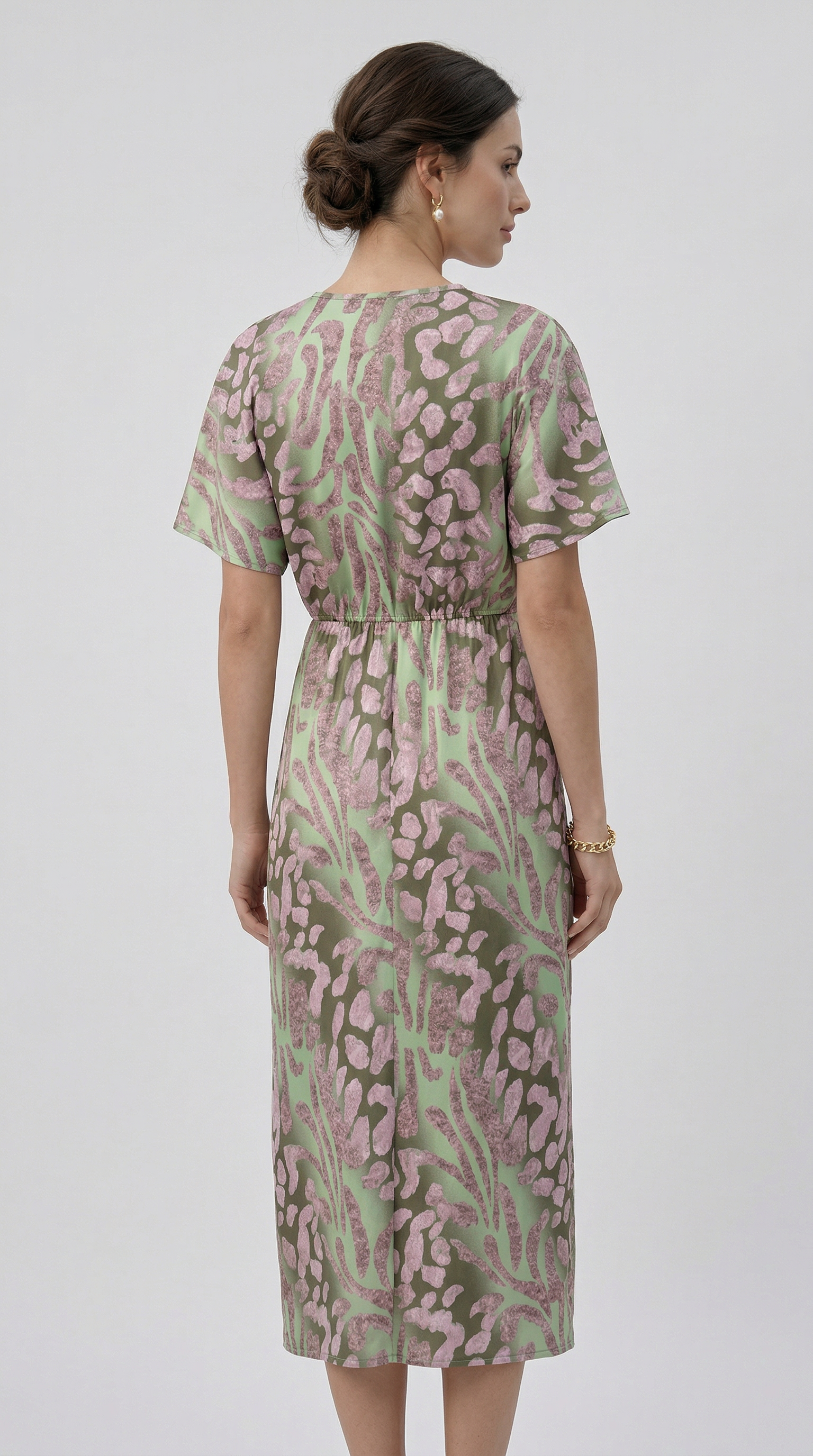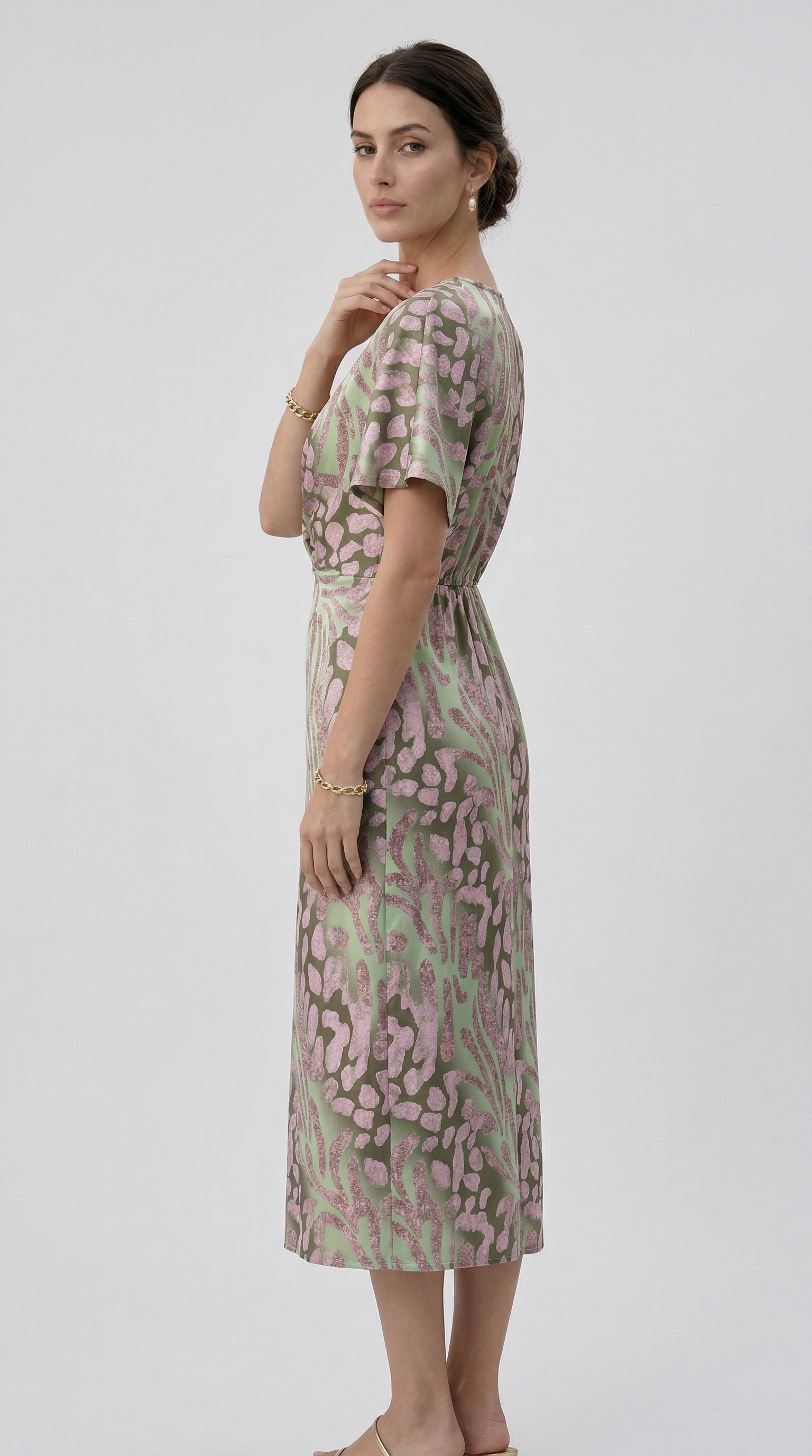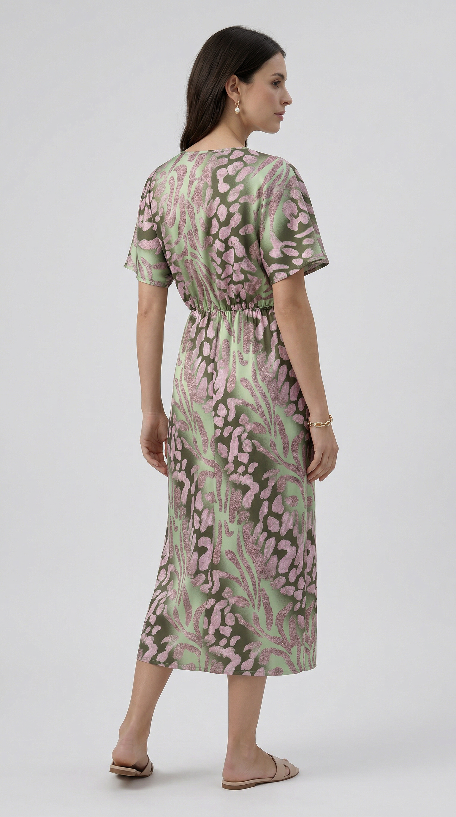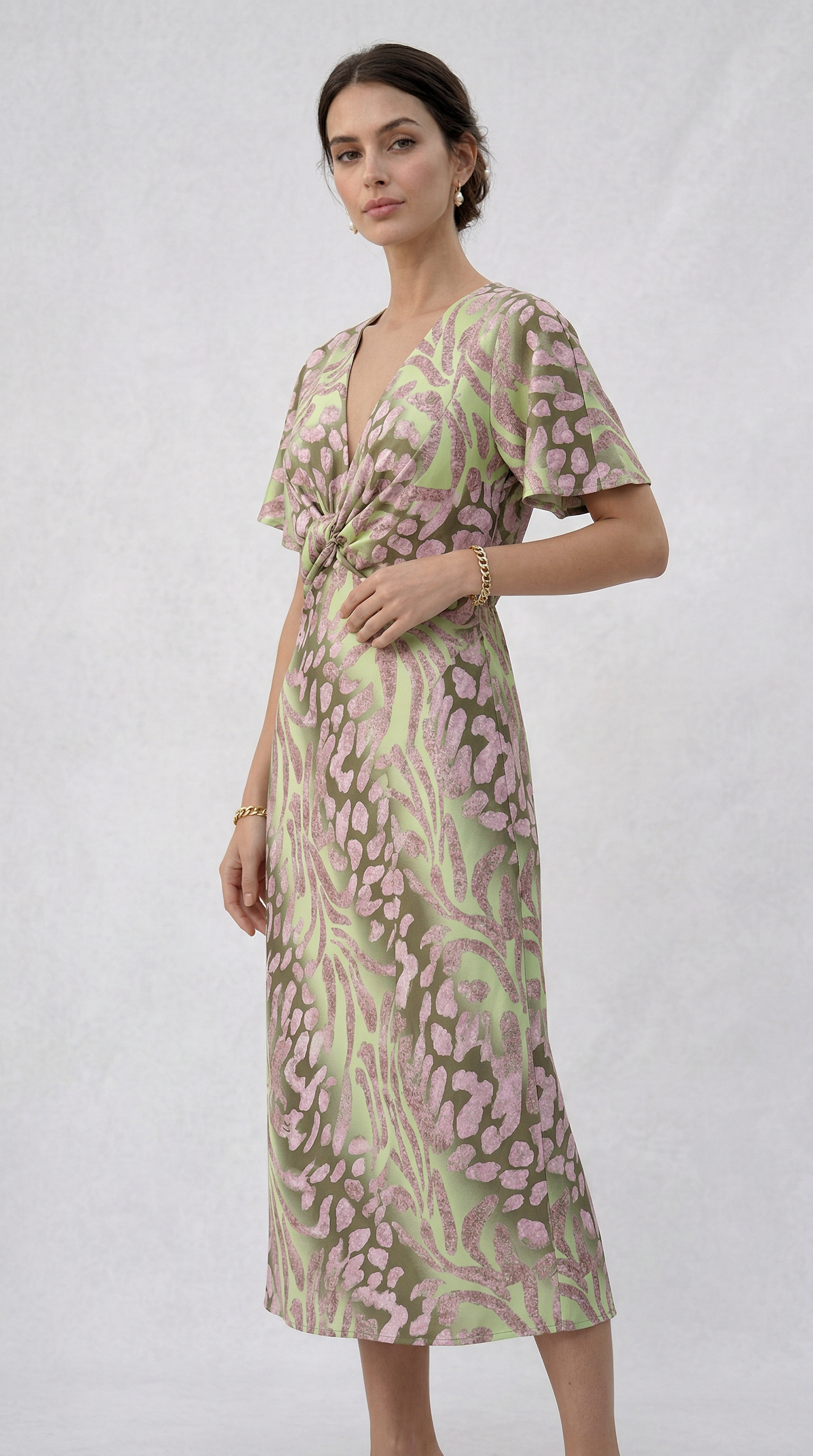 Scopri un abito lungo elegante e versatile, pensato per valorizzare la silhouette con naturalezza. Il design con scollo a V e dettaglio incrociato dona un tocco sofisticato e femminile, perfetto per ogni occasione.